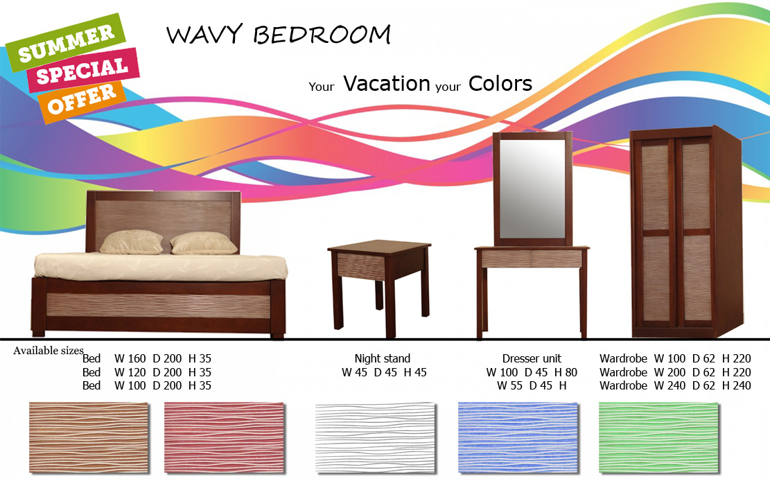 ( Bed , 2 Night stands , Dresser , Mirror , Wardrobe )